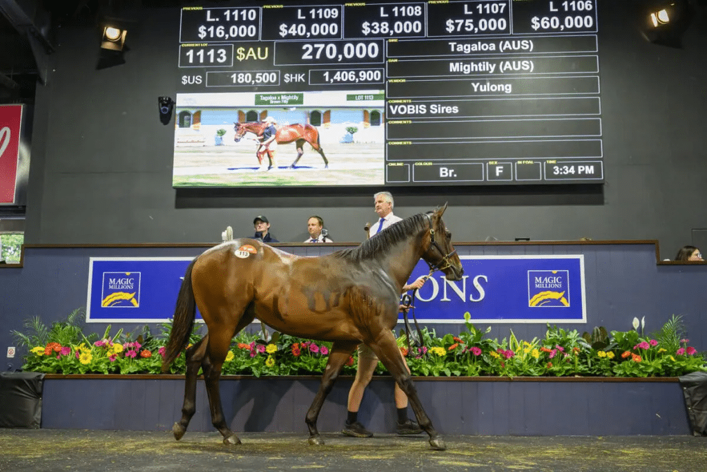 A daughter of Blue Diamond Stakes winner Tagaloa provided a late highlight to the 2026 Magic Millions Gold Coast Yearling Sale, topping Sunday’s concluding session when knocked down to Cape Schanck Stud for $270,000.